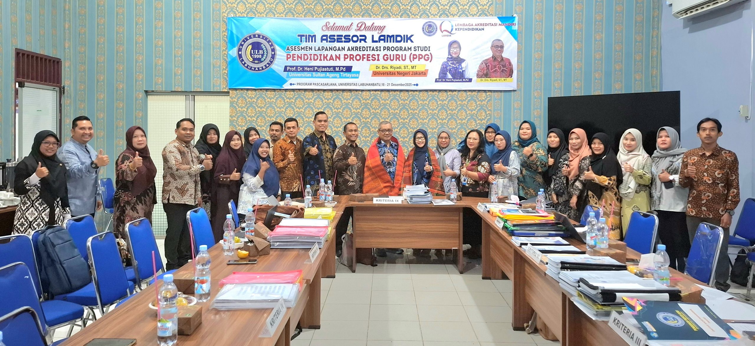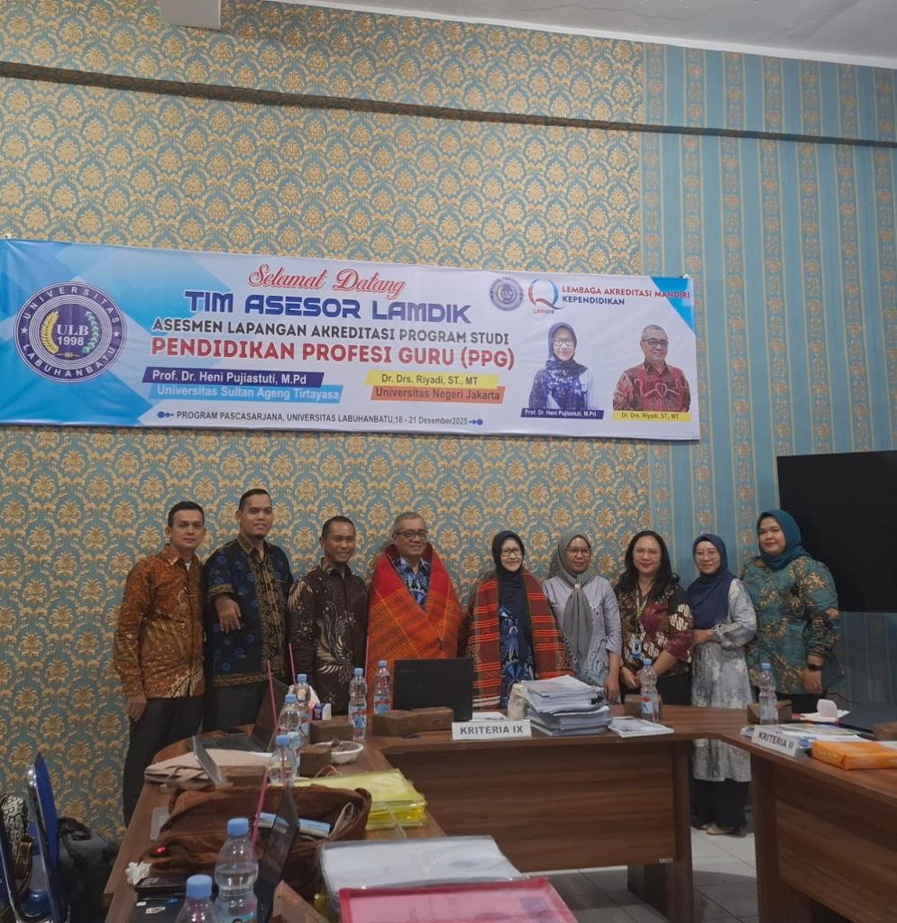 Kegiatan ini berlangsung selama 2 (dua) hari, hari pertama pembukaan Asesmen Lapangan PPG dilaksanakan pada Jumat 19 Desember 2025 di ruang rapat Universitas Labuhanbatu. Pembukaan AL di hadiri oleh Asesor Asesmen Lapangan dari LAMDIK Prof. Dr. Heni Pujiastuti, M.Pd, Dr. Rs. Riyadi, ST., MT, Wakil Rektor I Assoc. Prof. Dr. Sriono, SH., M.Kn, Wakil Rektor III Assoc.Prof. Dr. Marlina Siregar, M.Pd, Direktur Program Pascasarjana Dr. Zainal Abidin Pakpahan, SH., MH, Koordinator PPG Assoc. Prof. Dr. Amin Harahap, M.Si, Ketua LPPM Prof. Dr. Novilda Elizabeth Mustamu, M.Si, Ketua LP3M Ika Ayu Putri Septyani, M.P, Ka. Biro Keuangan, Aset dan Kepegawaian Putri Habibah Siregar, SH., MH, Dosen PPG, Pengelola PPG serta staf administrasi PPG.