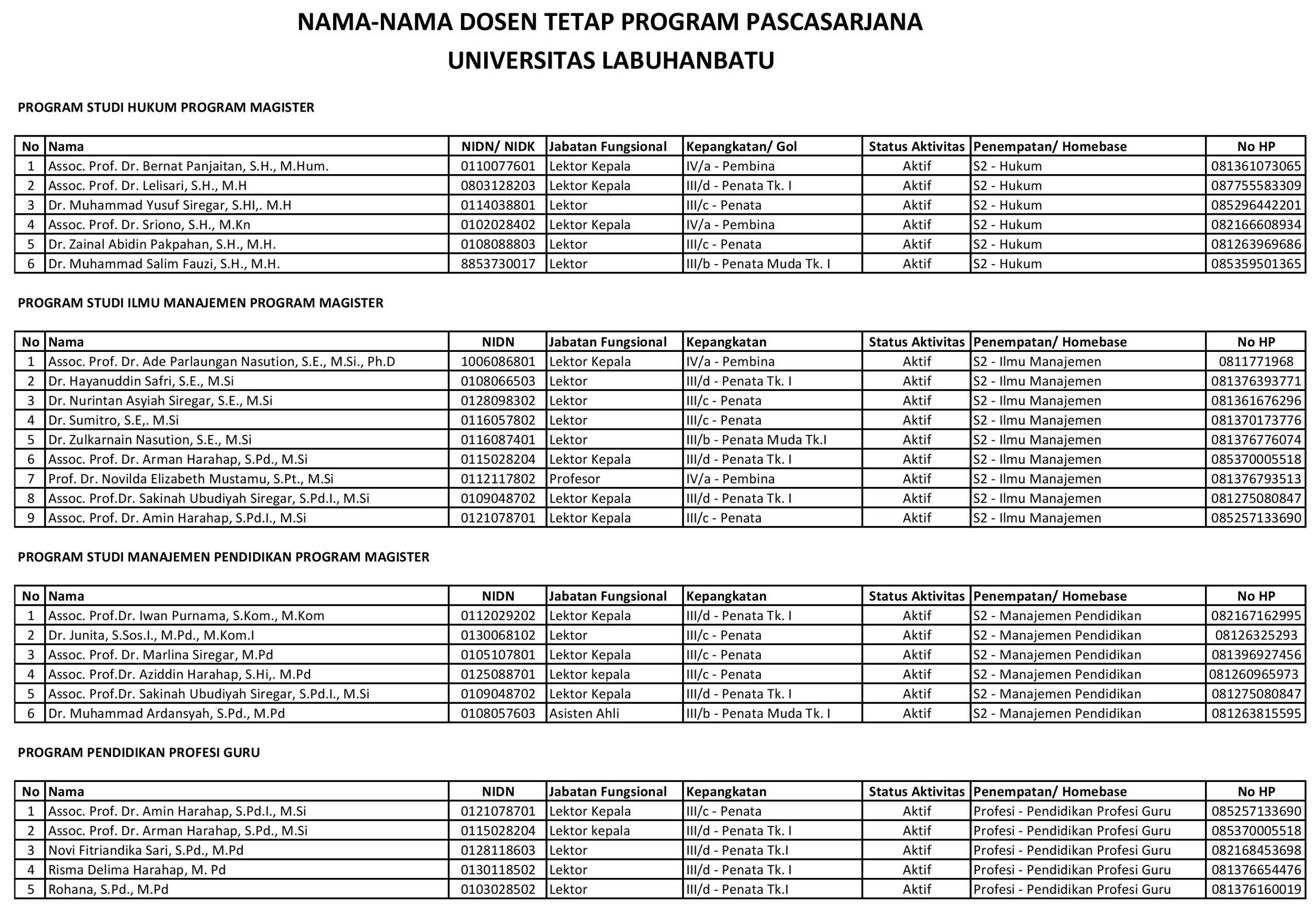 DOSEN TETAP PASCASARJANA